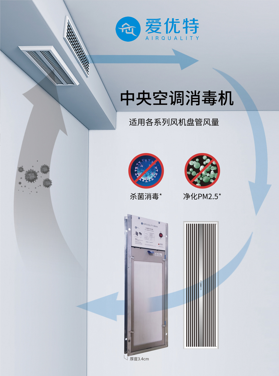 爱优特微静电中央空调消毒机,明装简约奢华,暗装隐形守护。